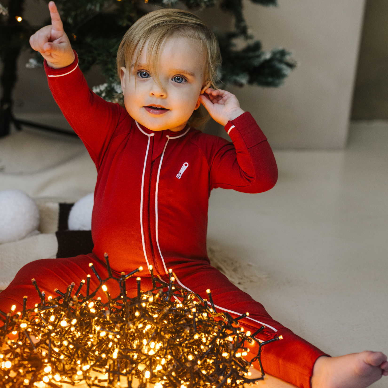 Vi anbefaler, at du holder dig til størrelsen, men hvis du er i tvivl om størrelsen, skal du gå ned. Hvis din baby f.eks. er 5 måneder gammel, anbefaler vi 3-6 måneder i stedet for 6-12 måneder. I de fleste tilfælde vil babygarderoben passe indtil 2-3 måneder efter det øverste aldersinterval.